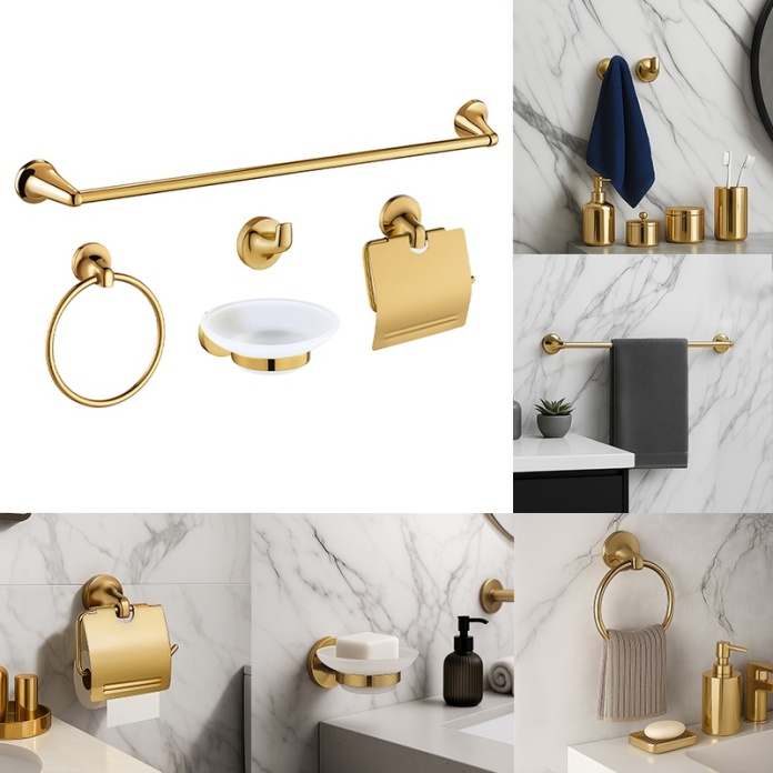 AKCESORIA ŁAZIENKOWE ZESTAW WIESZAK UCHWYT ŁAZIENKOWY RETRO 5W1 COLIN ZŁOTE