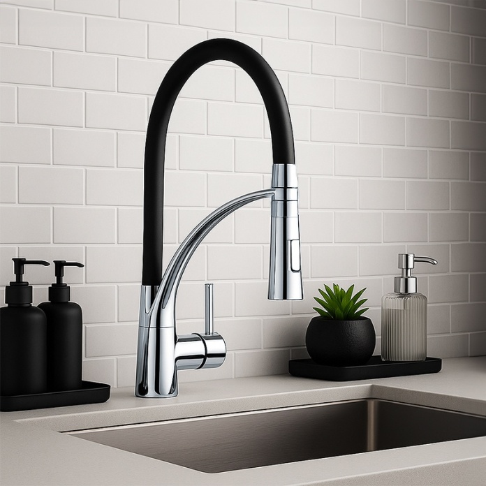Elastyczna wylewka – Elastyczna wylewka zapewnia dużą swobodę ruchów, co ułatwia mycie naczyń oraz czyszczenie zlewu. Dzięki elastycznemu przewodowi możesz wygodnie kierować strumień wody w różne miejsca, co poprawia komfort użytkowania, szczególnie przy większych naczyniach lub w trudno dostępnych miejscach.