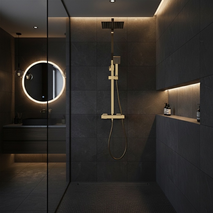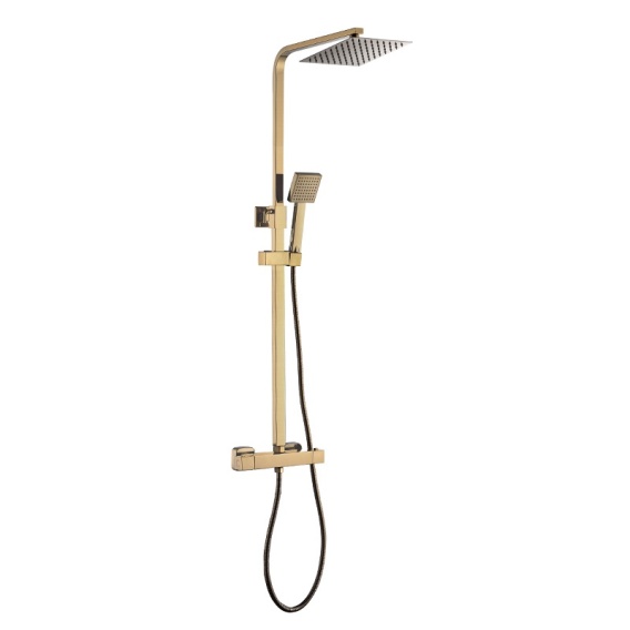BATERIA PRYSZNICOWA Z TERMOSTATEM DESZCZOWNICĄ T153 ZŁOTA SZCZOTKOWANA