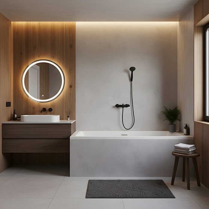 Wylewka i bateria termostatyczna – Dzięki wbudowanej wylewce i baterii termostatycznej, możesz precyzyjnie kontrolować temperaturę wody, co zwiększa komfort i zapewnia bezpieczeństwo użytkowania, eliminując ryzyko nagłych zmian temperatury.