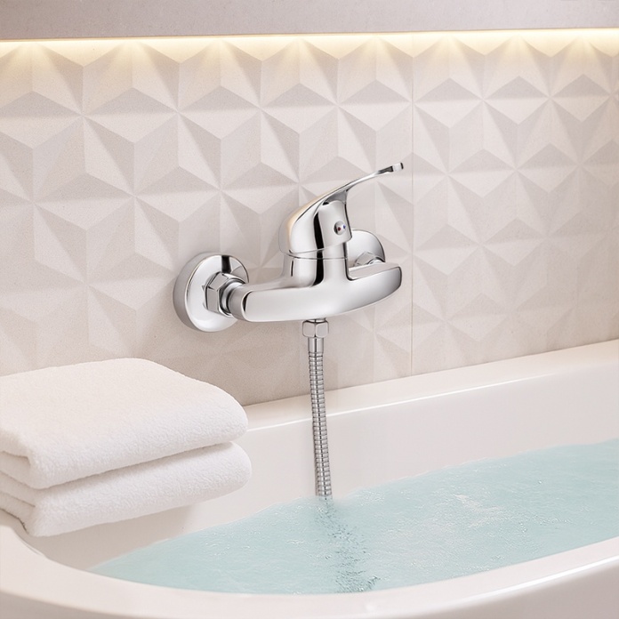 Montaż ścienny – Klasyczny sposób montażu, który pasuje do większości standardowych instalacji łazienkowych. Pozwala na stabilne zamocowanie baterii, zapewniając wygodę użytkowania oraz estetyczny wygląd, idealnie wkomponowując się w różne aranżacje wnętrz.