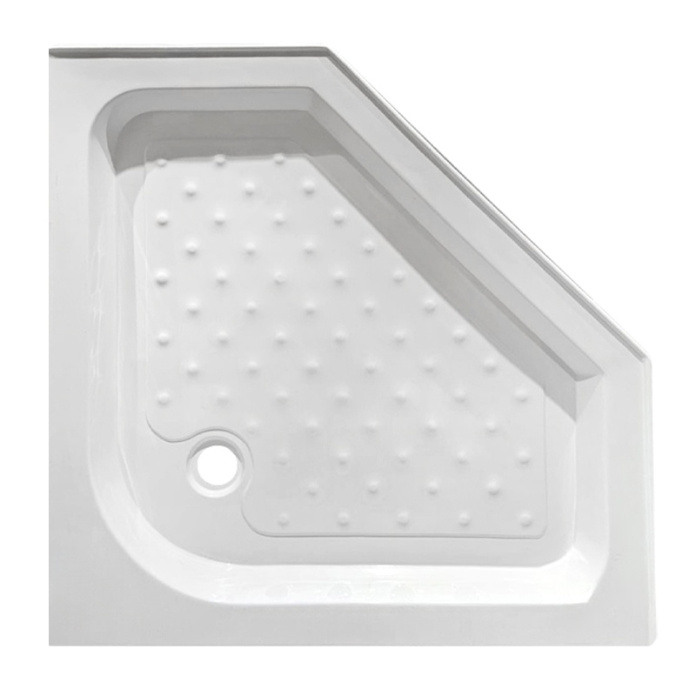 • Przemyślany kształt – Pięciokątna forma pozwala optymalnie wykorzystać narożnik łazienki, oszczędzając przestrzeń i zapewniając jednocześnie komfort korzystania ze strefy prysznicowej.