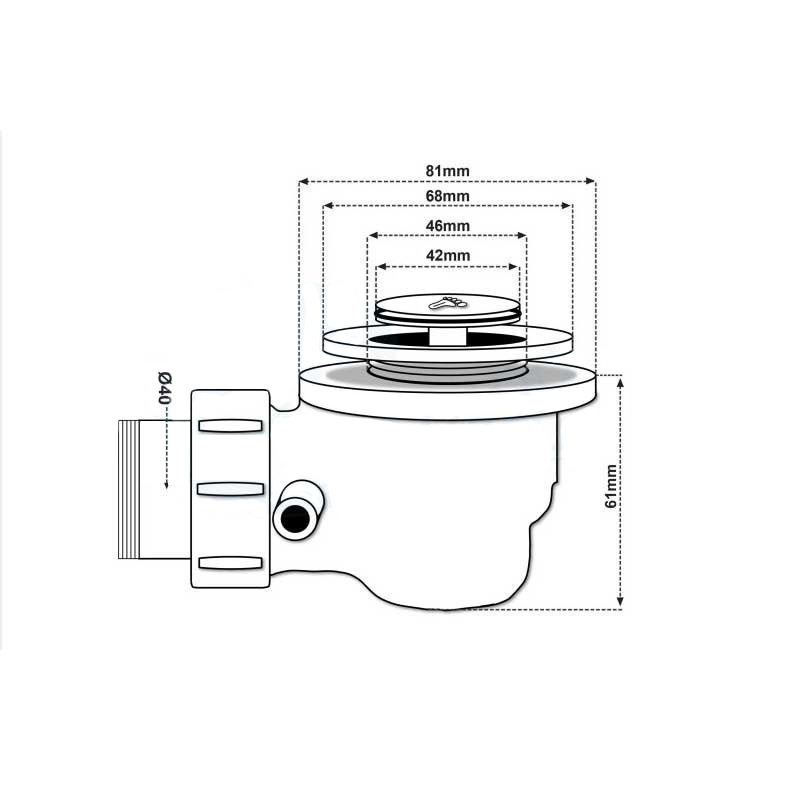 • Syfon brodzikowy klik - klak z uszczelkami, posiadający element umożliwiający czyszczenie od góry oraz koszyk na nieczystości