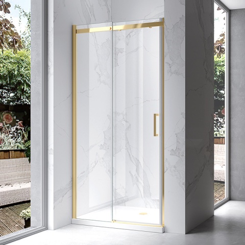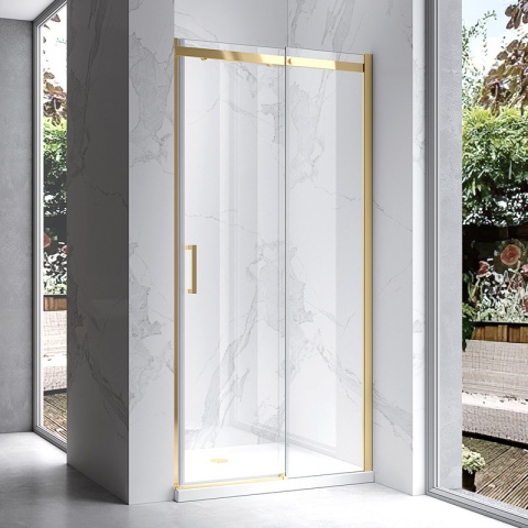 DRZWI PRYSZNICOWE PRZESUWNE DO WNĘKI ZES-KZ09B-GL-110 ZŁOTE 105-110 CM 8 MM