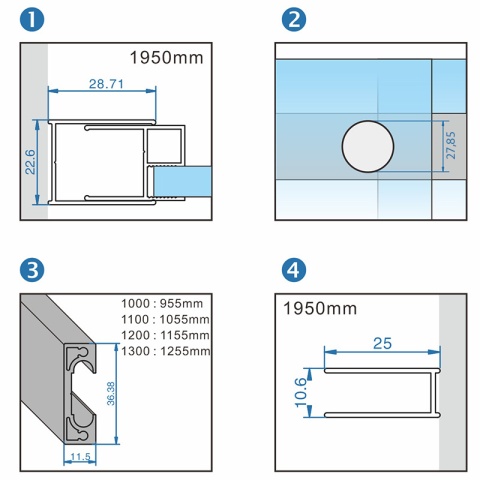 - Możliwość dostosowania długości drzwi prysznicowych do mniejszych rozmiarów nawet o 50mm! Należy skrócić profil górny samodzielnie TYLKO I WYŁĄCZNIE od strony drzwi (szyny po której jeżdżą rolki, poprzez jej ucięcie na dowolną długość).