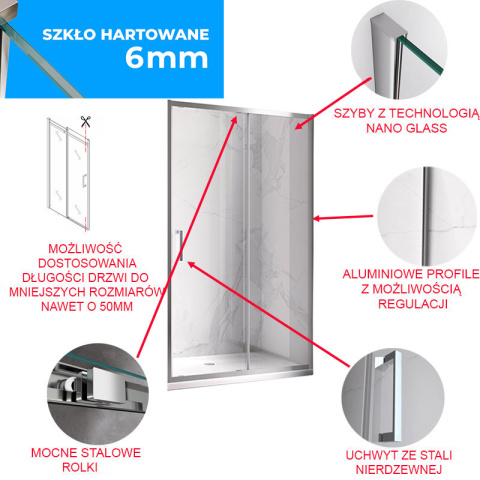 - Wygodne otwieranie przesuwne - Praktyczne i komfortowe rozwiązanie, które ułatwia codzienne korzystanie z prysznica.