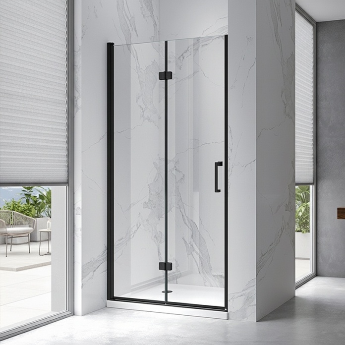 DRZWI PRYSZNICOWE UCHYLNE DO WNĘKI ZES-KZ21C-BL-90 CZARNE 90 CM 6 MM