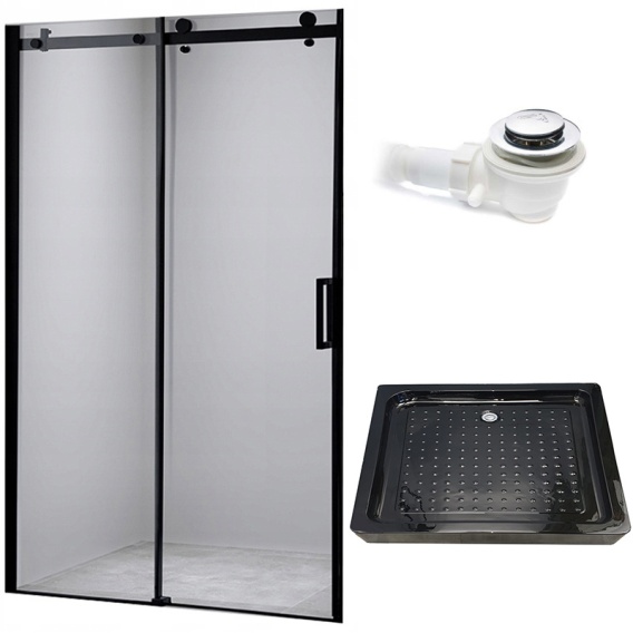 DRZWI PRYSZNICOWE Z BRODZIKIEM SH03B/SXL03C CZARNE/CZARNY 95-100/100x80 CM 8 MM