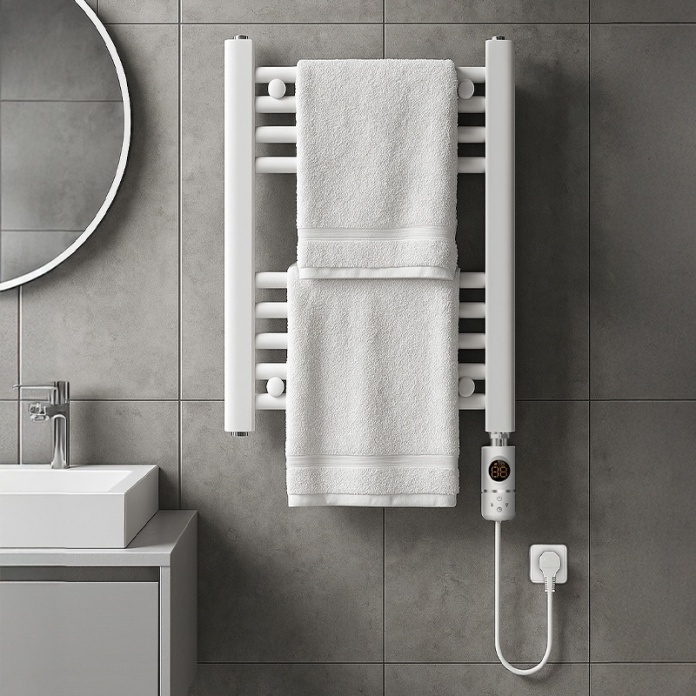 • Stylowy wygląd – Nowoczesna forma, biała powłoka i smukła konstrukcja (tylko 45 mm głębokości) sprawiają, że grzejnik doskonale prezentuje się w każdej łazience – to elegancki dodatek do wnętrza.