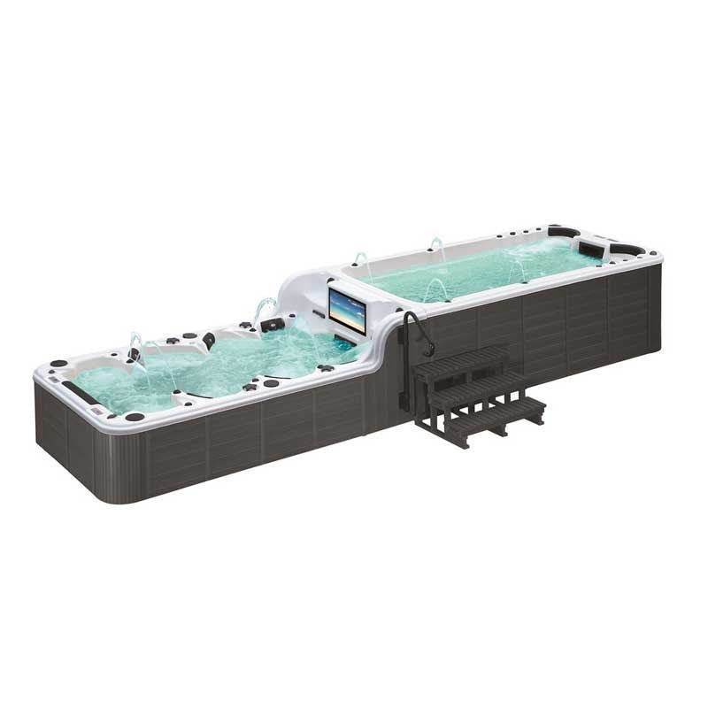 BASEN JEST PODZIELONY NA POŁOWĘ: jedna połowa zajmuje WANNĘ SPA, a druga BASEN do pływania.