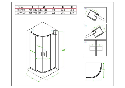 KABINA PRYSZNICOWA PÓŁOKRĄGŁA Z BRODZIKIEM KZ94A/SXL01A CHROM/CZARNY 80x80