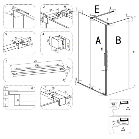• Wymiary – uniwersalne, do montażu na brodziku lub na płytkach.