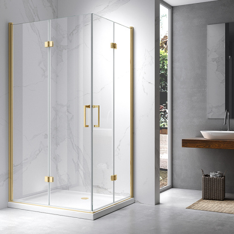 KABINA PRYSZNICOWA PROSTOKĄTNA KZ13A ZŁOTY SZCZOTKOWANY 100x90 CM