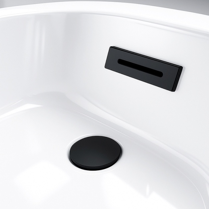 • Estetyczna maskownica przelewowa - Starannie wykonana, prostokątna maskownica nie tylko zakrywa otwór przelewowy, ale również podnosi estetykę całej wanny. Jej subtelna forma i precyzyjne wykończenie czynią z niej nie tylko funkcjonalny element, ale również detal dekoracyjny.