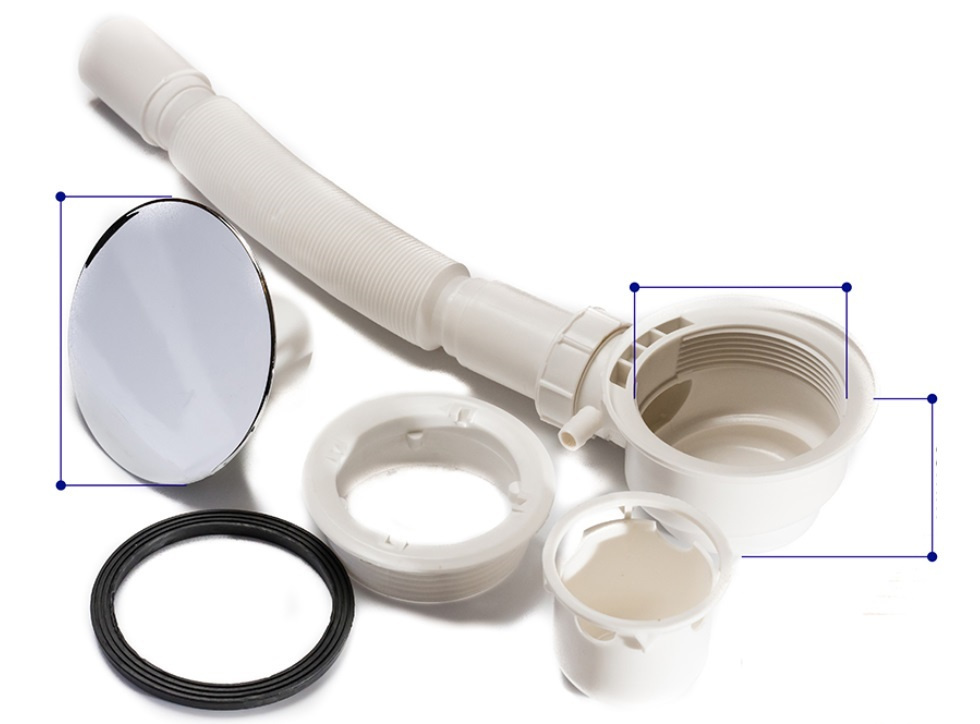 • Syfon brodzikowy klik-klak z uszczelkami, posiadający element umożliwiający czyszczenie od góry oraz koszyk na nieczystości