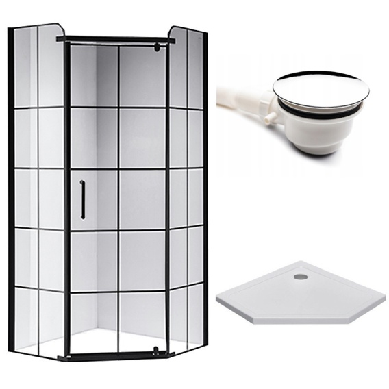 KABINA PRYSZNICOWA PIĘCIOKĄTNA Z BRODZIKIEM BS06A/ST07A CZARNA/BIAŁA 80x80 CM