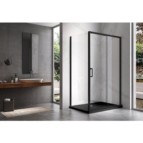 KABINA PRYSZNICOWA PROSTOKĄTNA Z BRODZIKIEM KZ103A/ST03A CZARNA/CZARNY 100x80 CM