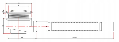 • Syfon brodzikowy niski z uszczelkami, posiadający element umożliwiający czyszczenie od góry oraz koszyk na nieczystości