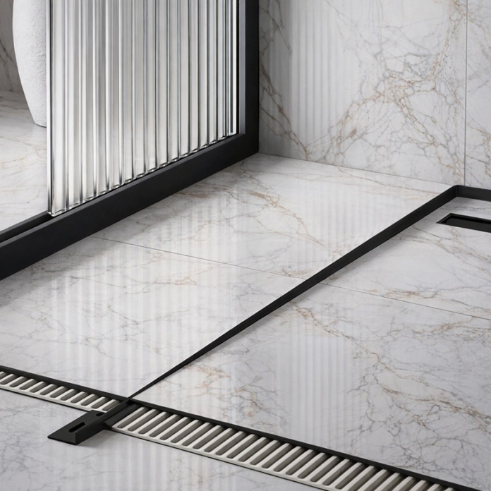 • Profil spadkowy - Konstrukcja listwy pomaga ukształtować prawidłowy spadek w strefie prysznica, dzięki czemu woda jest skuteczniej kierowana w stronę odpływu. To poprawia komfort użytkowania i ogranicza rozchlapywanie poza strefę mokrą.