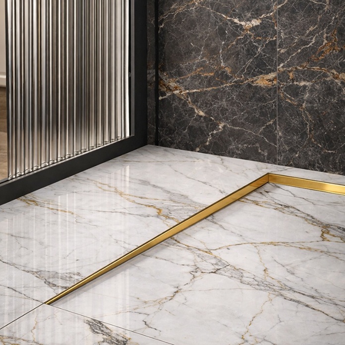 • Profil spadkowy - Konstrukcja listwy pomaga ukształtować prawidłowy spadek w strefie prysznica, dzięki czemu woda jest skuteczniej kierowana w stronę odpływu. To poprawia komfort użytkowania i ogranicza rozchlapywanie poza strefę mokrą.