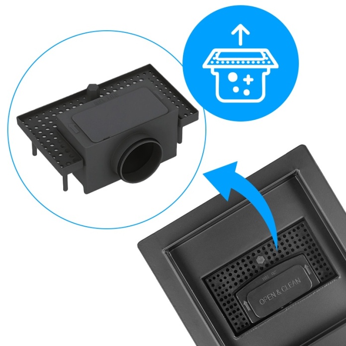 W codziennej eksploatacji liczy się przede wszystkim wygoda. Odpływ liniowy Hydrosan wyposażono w zdejmowaną maskownicę, która umożliwia łatwy dostęp do syfonu od góry. Dzięki temu można w prosty sposób oczyścić wnętrze z ewentualnych zanieczyszczeń, bez konieczności demontażu całej instalacji. To praktyczne rozwiązanie znacznie ułatwia utrzymanie idealnej czystości i higieny w strefie prysznicowej.