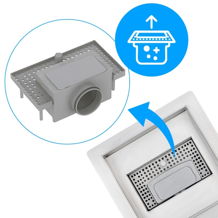 W codziennej eksploatacji liczy się przede wszystkim wygoda. Odpływ liniowy Hydrosan wyposażono w zdejmowaną maskownicę, która umożliwia łatwy dostęp do syfonu od góry. Dzięki temu można w prosty sposób oczyścić wnętrze z ewentualnych zanieczyszczeń, bez konieczności demontażu całej instalacji. To praktyczne rozwiązanie znacznie ułatwia utrzymanie idealnej czystości i higieny w strefie prysznicowej.