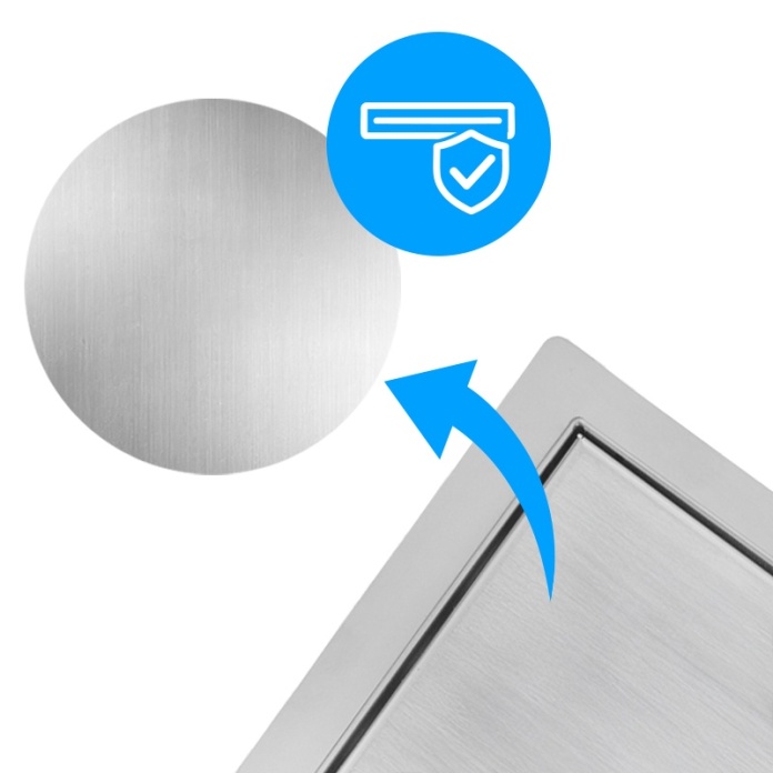 Gładka powierzchnia odpływu nadaje mu wyjątkowo elegancki i nowoczesny charakter. To wykończenie jest również bardzo praktyczne – subtelny połysk skutecznie maskuje drobne ślady użytkowania, takie jak zacieki czy osady z wody. Dzięki temu, z łatwością utrzymasz nienaganną czystość i estetykę w swojej łazience przez długi czas, bez konieczności ciągłego polerowania.