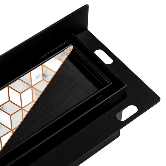 Całość wieńczy nowoczesna maskownica typu 2 w 1, dająca możliwość spersonalizowania wykończenia. Można ją wyłożyć taką samą płytką jak resztę ściany, by stała się niemal niewidoczna, lub pozostawić widoczną czarną powierzchnię. Dzięki temu można stworzyć strefę prysznicową idealnie wpisującą się w nowoczesne aranżacje typu walk-in.