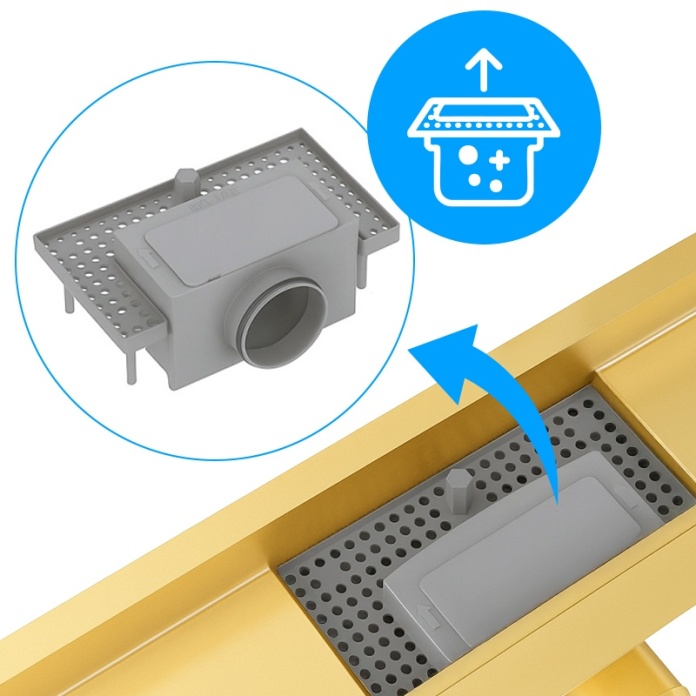 W codziennej eksploatacji liczy się przede wszystkim wygoda. Odpływ liniowy Hydrosan wyposażono w zdejmowaną maskownicę, która umożliwia łatwy dostęp do syfonu od góry. Dzięki temu można w prosty sposób oczyścić wnętrze z ewentualnych zanieczyszczeń, bez konieczności demontażu całej instalacji. To praktyczne rozwiązanie znacznie ułatwia utrzymanie idealnej czystości i higieny w strefie prysznicowej.