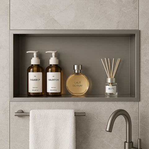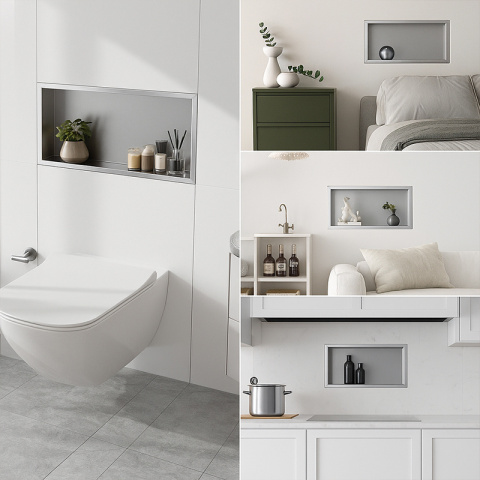 Półki wnękowe najczęściej stosuje się w łazienkach – w strefie prysznica, nad wanną lub przy umywalce, ale dzięki estetycznemu wykończeniu dobrze sprawdzają się także w kuchni, salonie czy garderobie.