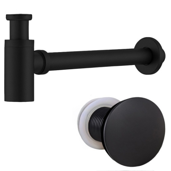 SYFON UMYWALKOWY METALOWY MIKE-BL + KOREK KLIK-KLAK CZARNY MAT ZESTAW