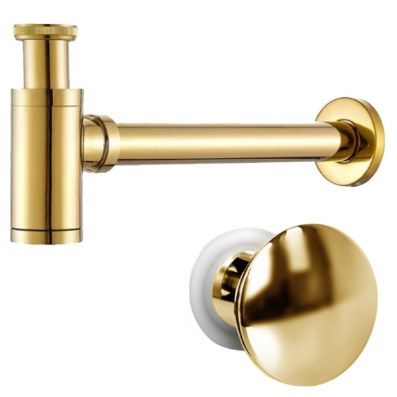 SYFON UMYWALKOWY METALOWY MIKE-GL + KOREK KLIK-KLAK Z PRZELEWEM ZŁOTY ZESTAW
