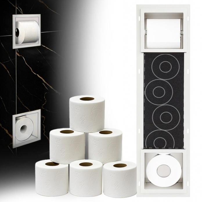 UCHWYT NA PAPIER TOALETOWY WNĘKOWY Z MAGAZYNKIEM DO ZABUDOWY DARIO-WH BIAŁY
