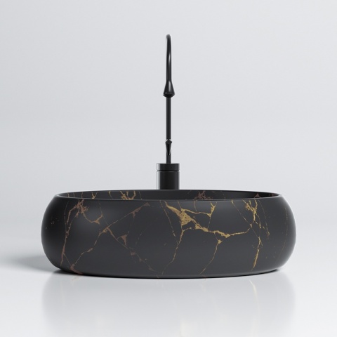 UMYWALKA NABLATOWA CERAMICZNA OWALNA CARI CZARNY MARMUR MAT 60x40 NA BLAT