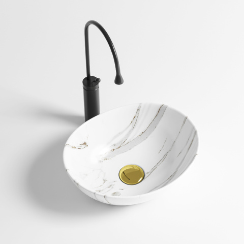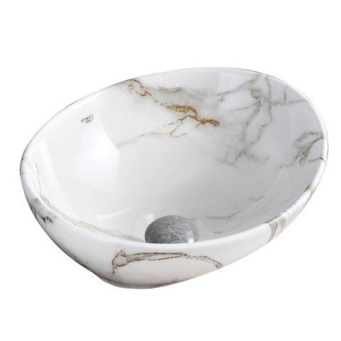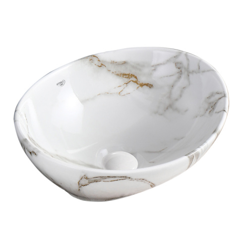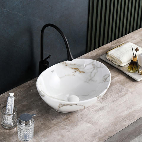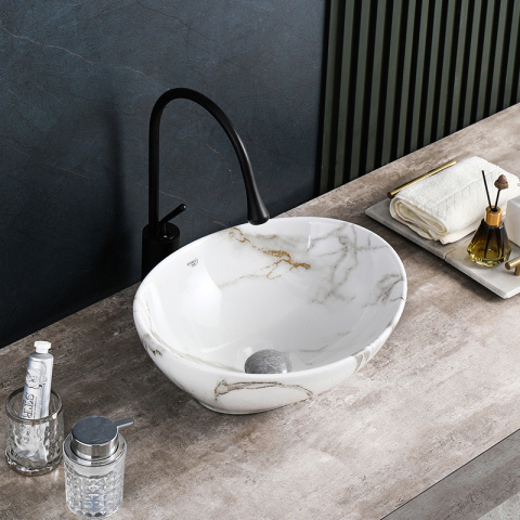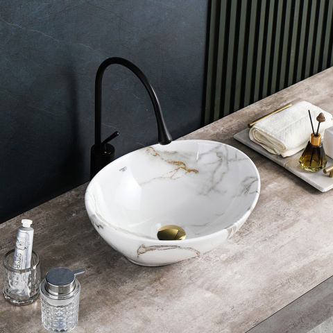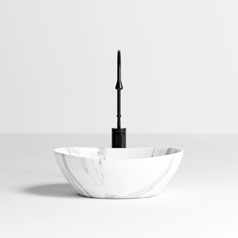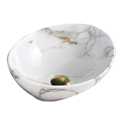 UMYWALKA NABLATOWA CERAMICZNA OWALNA LUMO BIAŁY MARMUR POŁYSK 34x27 NA BLAT