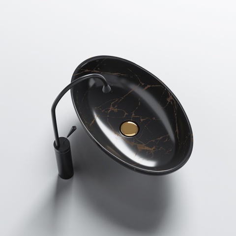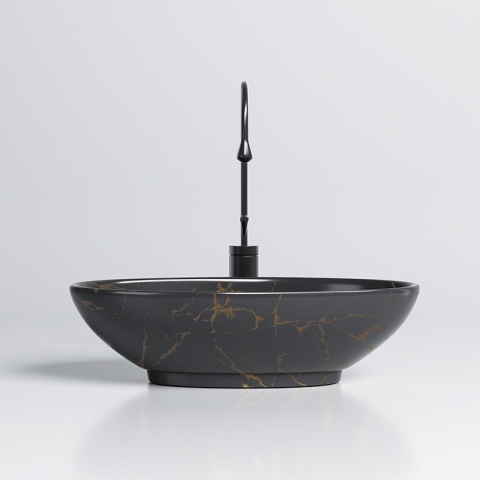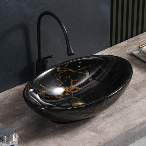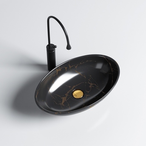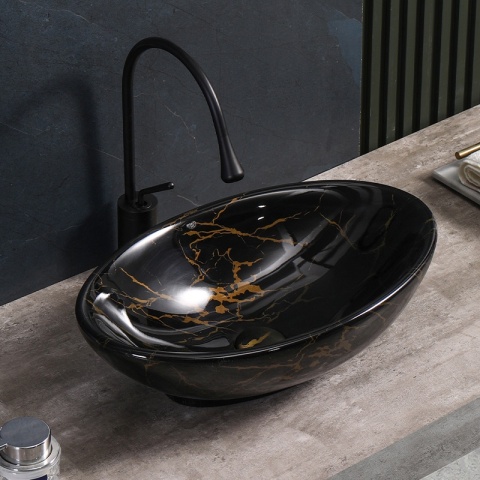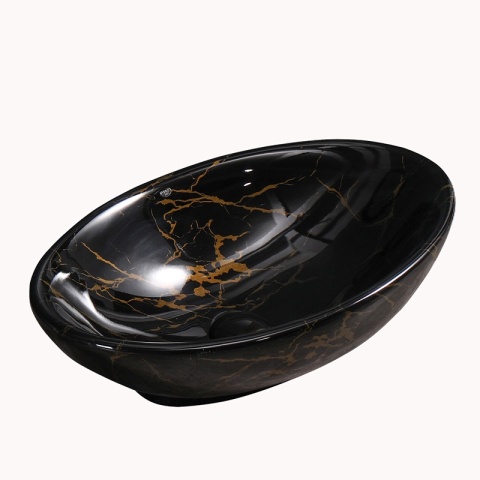 UMYWALKA NABLATOWA CERAMICZNA OWALNA LUMO CZARNY MARMUR POŁYSK 55x33 CM