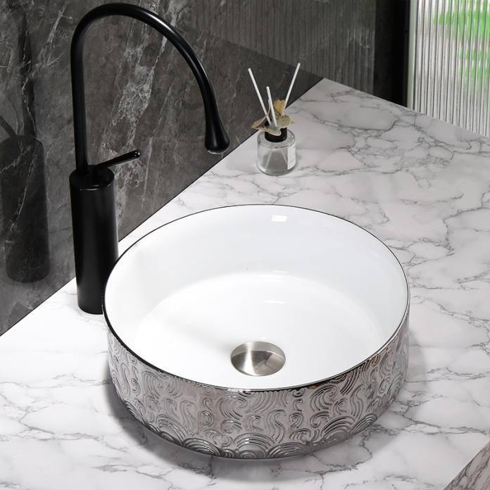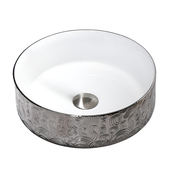 UMYWALKA NABLATOWA CERAMICZNA OKRĄGŁA LAVA-WH-SV-MOD3-360 SREBRNA 36x12 CM