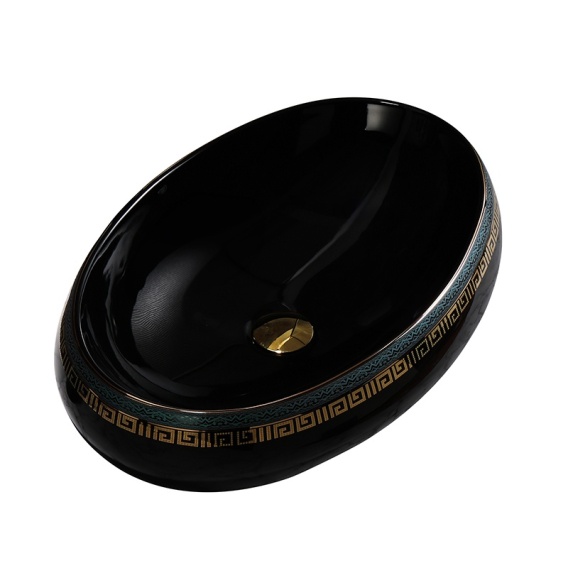 UMYWALKA NABLATOWA CERAMICZNA OWALNA CARI-BL-MOD2-600 CZARNY POŁYSK 60x40 CM