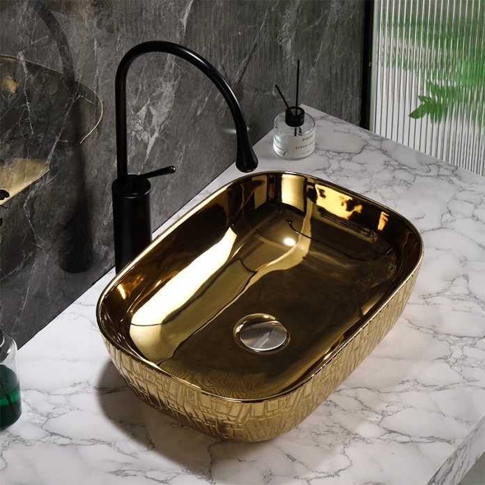 UMYWALKA NABLATOWA CERAMICZNA PROSTOKĄTNA MILO ZŁOTY POŁYSK 45x32 NA BLAT