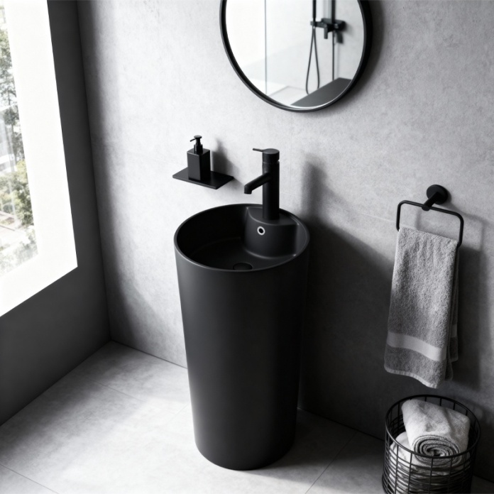 Nowoczesny design – minimalistyczna, monolityczna forma w kształcie postumentu sprawia, że umywalka doskonale komponuje się z eleganckimi i nowoczesnymi aranżacjami łazienkowymi.