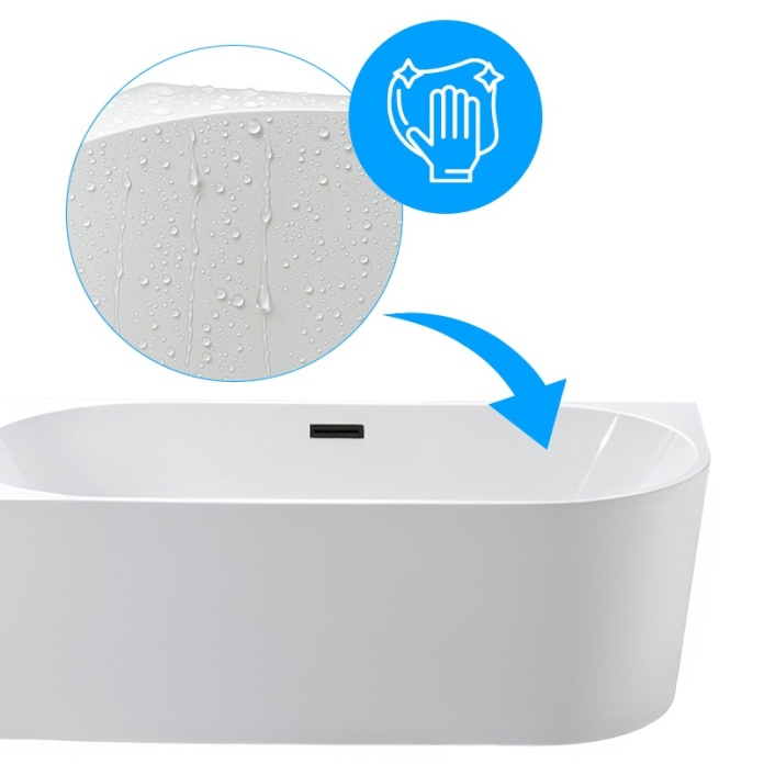 Wykonanie z czystego akrylu sanitarnego PURE ACRYLIC sprawia, że powierzchnia wanny jest idealnie gładka i nieporowata. Ułatwia to spływanie wody i zapobiega osadzaniu się kamienia oraz zanieczyszczeń, dzięki czemu codzienna pielęgnacja jest wyjątkowo prosta. Dodatkowo akryl doskonale utrzymuje temperaturę wody, gwarantując dłuższe, relaksujące kąpiele.