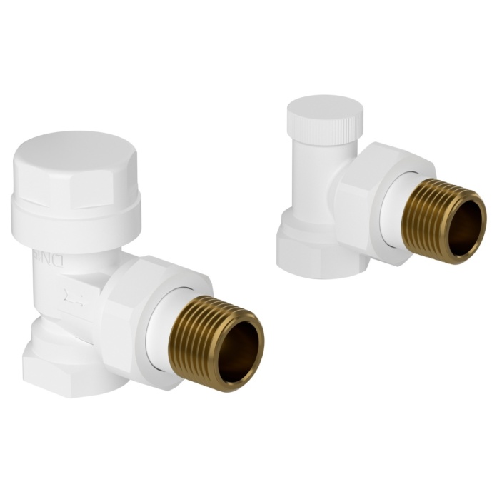W komplecie: Zawór grzejnikowy zasilający i odcinający