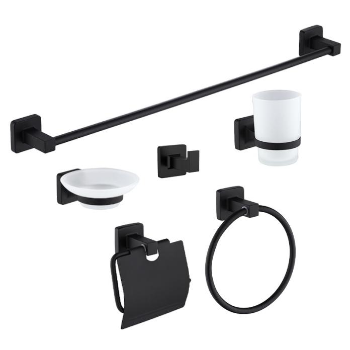 ZESTAW ŁAZIENKOWY AKCESORIA KOMPLET WIESZAK UCHWYT 6W1 DYLAN CZARNY