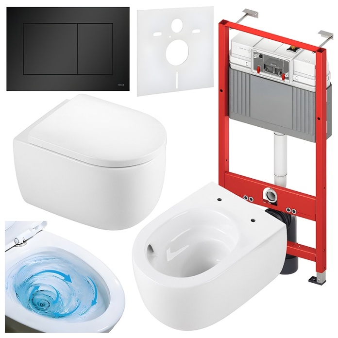 ZESTAW PODTYNKOWY WC STELAŻ TECE MISKA LAKE-WH-TR-02 PRZYCISK TC-9240407 CZARNY MAT