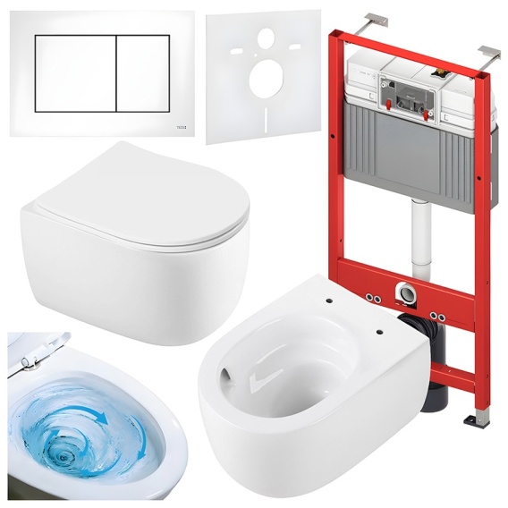 ZESTAW PODTYNKOWY WC STELAŻ TECE MISKA LAKE-WH-TR-03 PRZYCISK TC-9240417 BIAŁY MAT