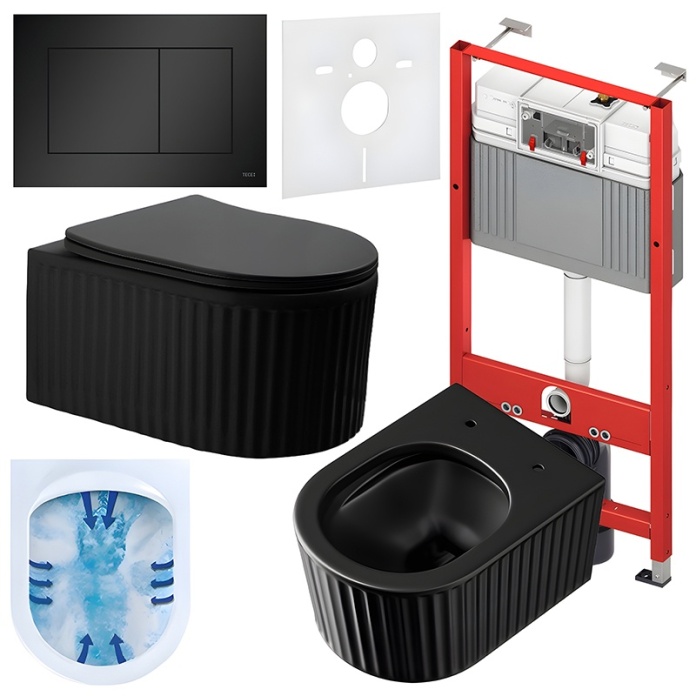 ZESTAW PODTYNKOWY WC STELAŻ TECE MISKA LUMA-MTB-RIM-03 PRZYCISK TC-9240407 CZARNY MAT