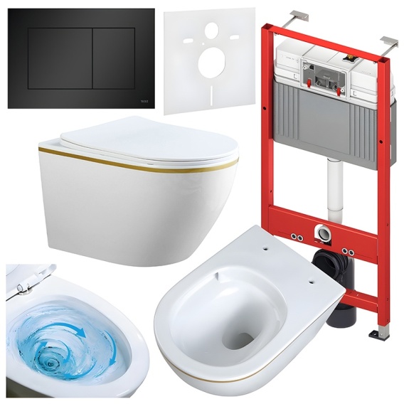 ZESTAW PODTYNKOWY WC STELAŻ TECE MISKA MIZU-WH-GL-TR-03 PRZYCISK TC-9240407 CZARNY MAT