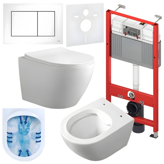 ZESTAW PODTYNKOWY WC STELAŻ TECE MISKA MIZU-WH-RIM-03 PRZYCISK TC-9240417 BIAŁY MAT