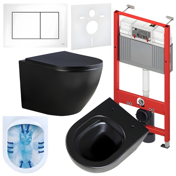 ZESTAW PODTYNKOWY WC STELAŻ TECE MISKA PEAK-MTB-RIM-02 PRZYCISK TC-9240417 BIAŁY MAT