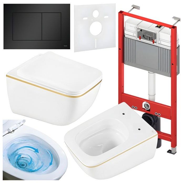 ZESTAW PODTYNKOWY WC STELAŻ TECE MISKA YUZU-WH-GL-TR-03 PRZYCISK TC-9240407 CZARNY MAT
